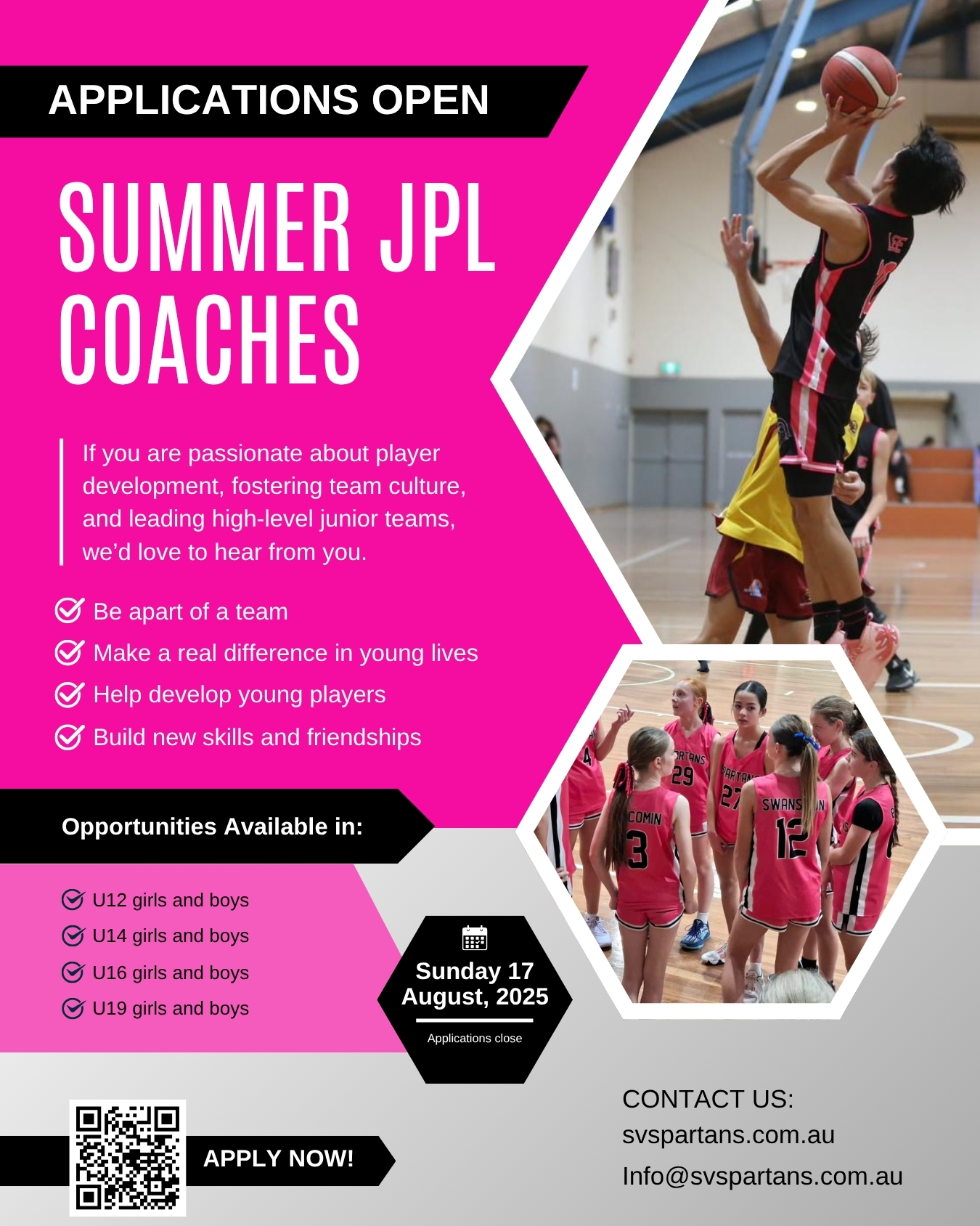 All applications will be reviewed by the Coaching coordinator and the committee, and successful applicants will be contacted for further discussions. Thank you for your continued support of Spartans Basketball – We look forward to building a strong and dedicated coaching team for the 2025/26 Summer Open Season.